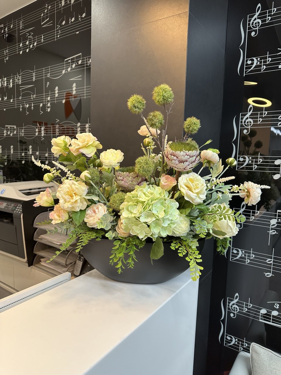 Авторские композиции из искусственных цветов и растений для жилых и коммерческих интерьеров.